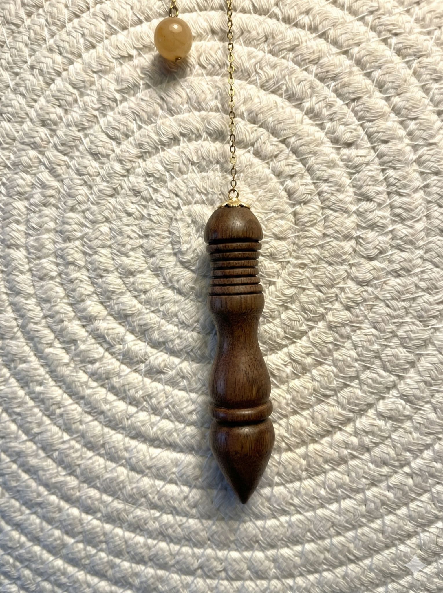 L’alliance du noyer et du Nombre d’Or crée un pendule naturellement accordé, résonant avec le champ énergétique du praticien et du consultant.